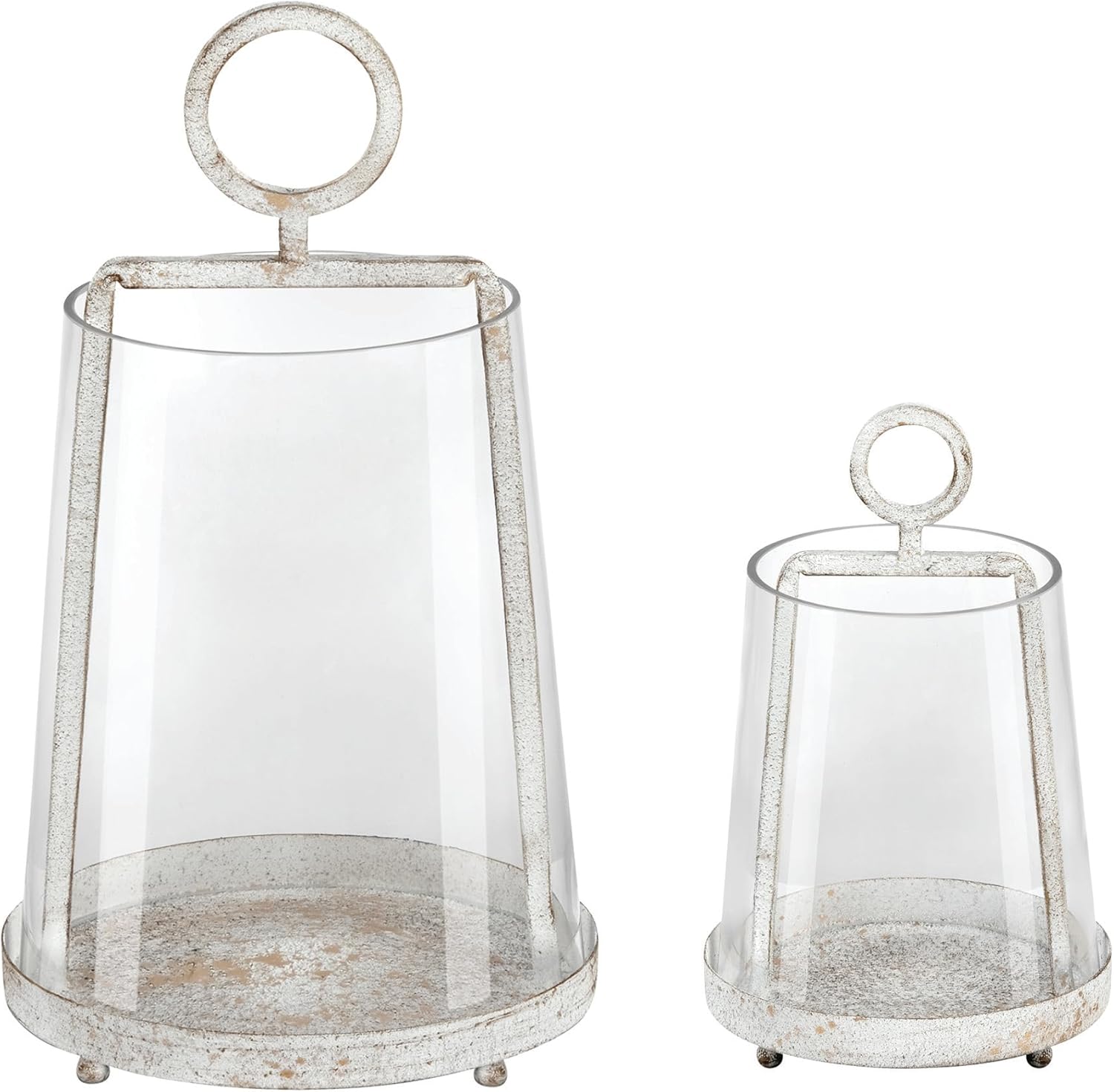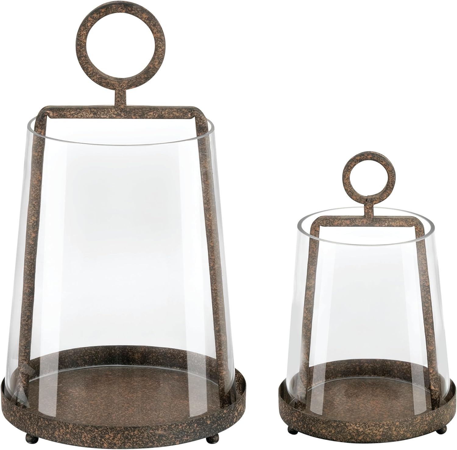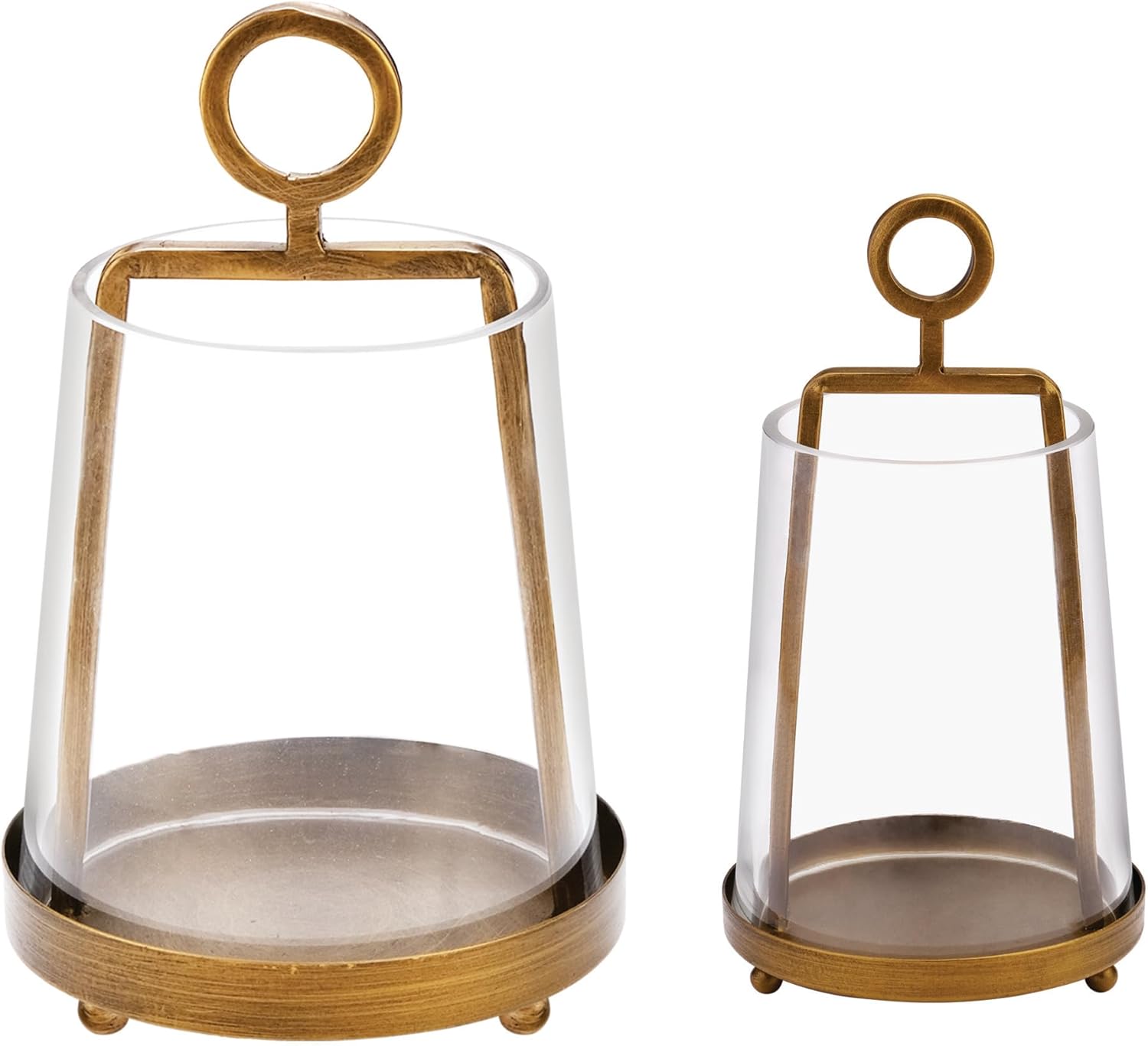 6" Wide Modern Farmhouse Metal Hurricane Candle Holder With Handmade Sturdy Glass Sleeve In Antique Brass For Pillar Candle & Plants, Hurricane Lantern, Industrial, Minimalistic